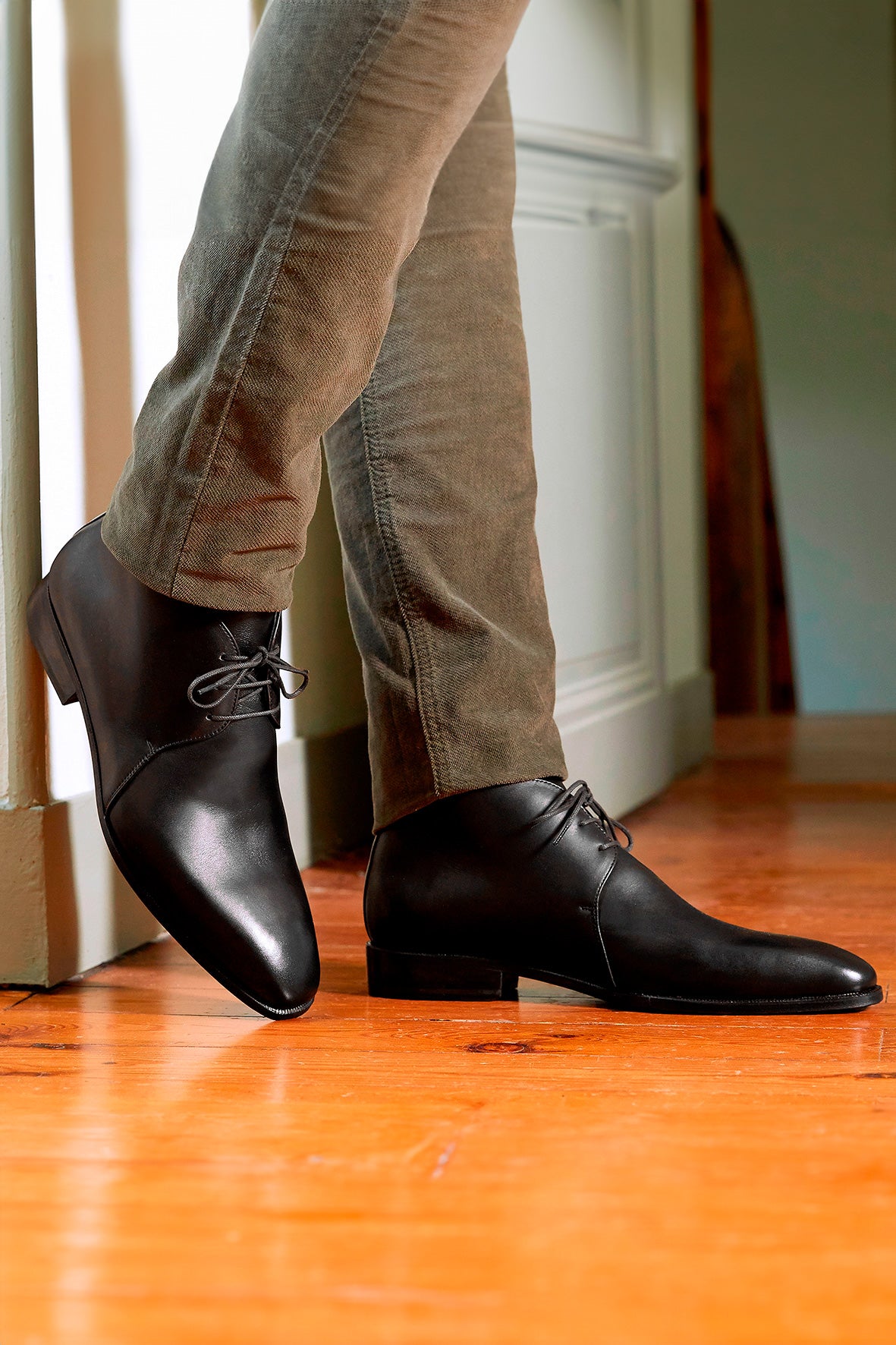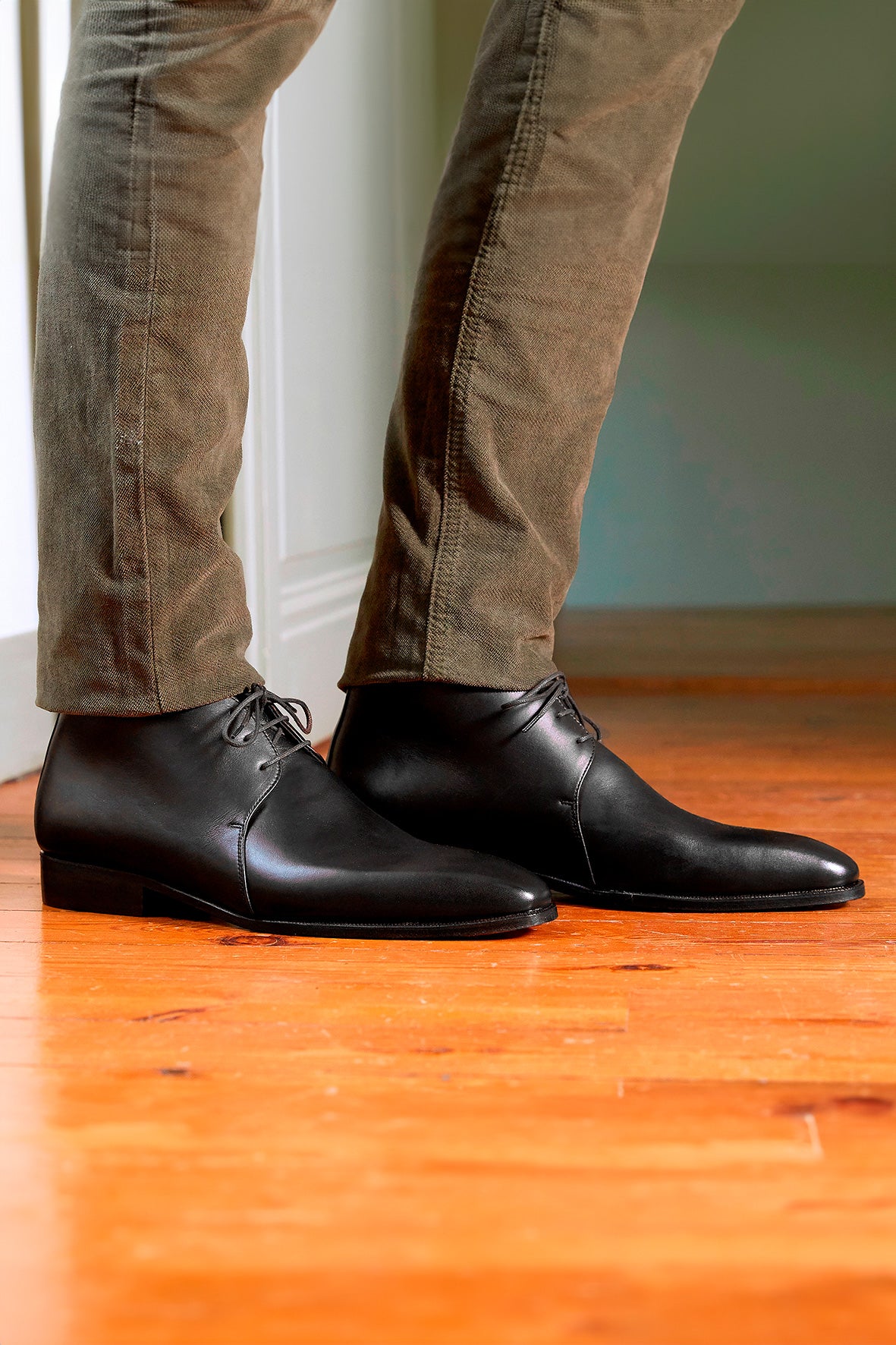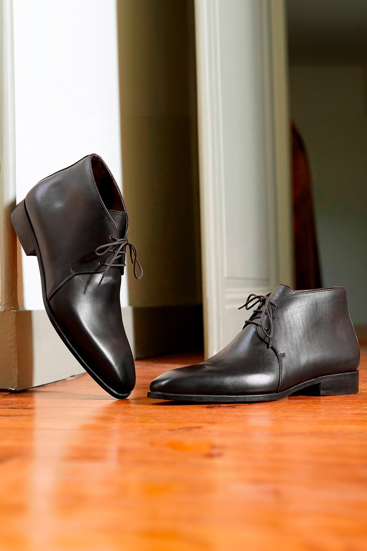 Ferdinand ankle boots are designed with very fine smooth leather. It is hand patinated with shades of black. It is the care of the shoe that creates this intense color. The lines of this shoe give it a distinguished and majestic look.