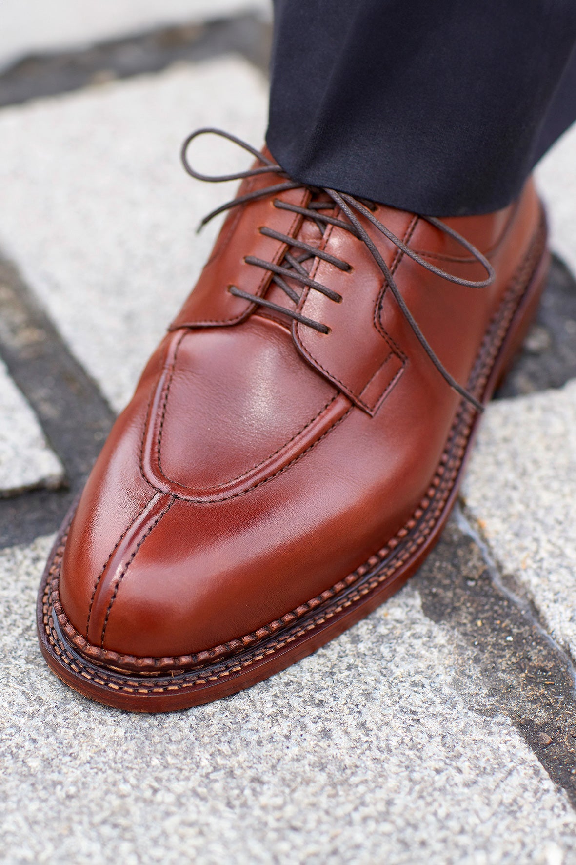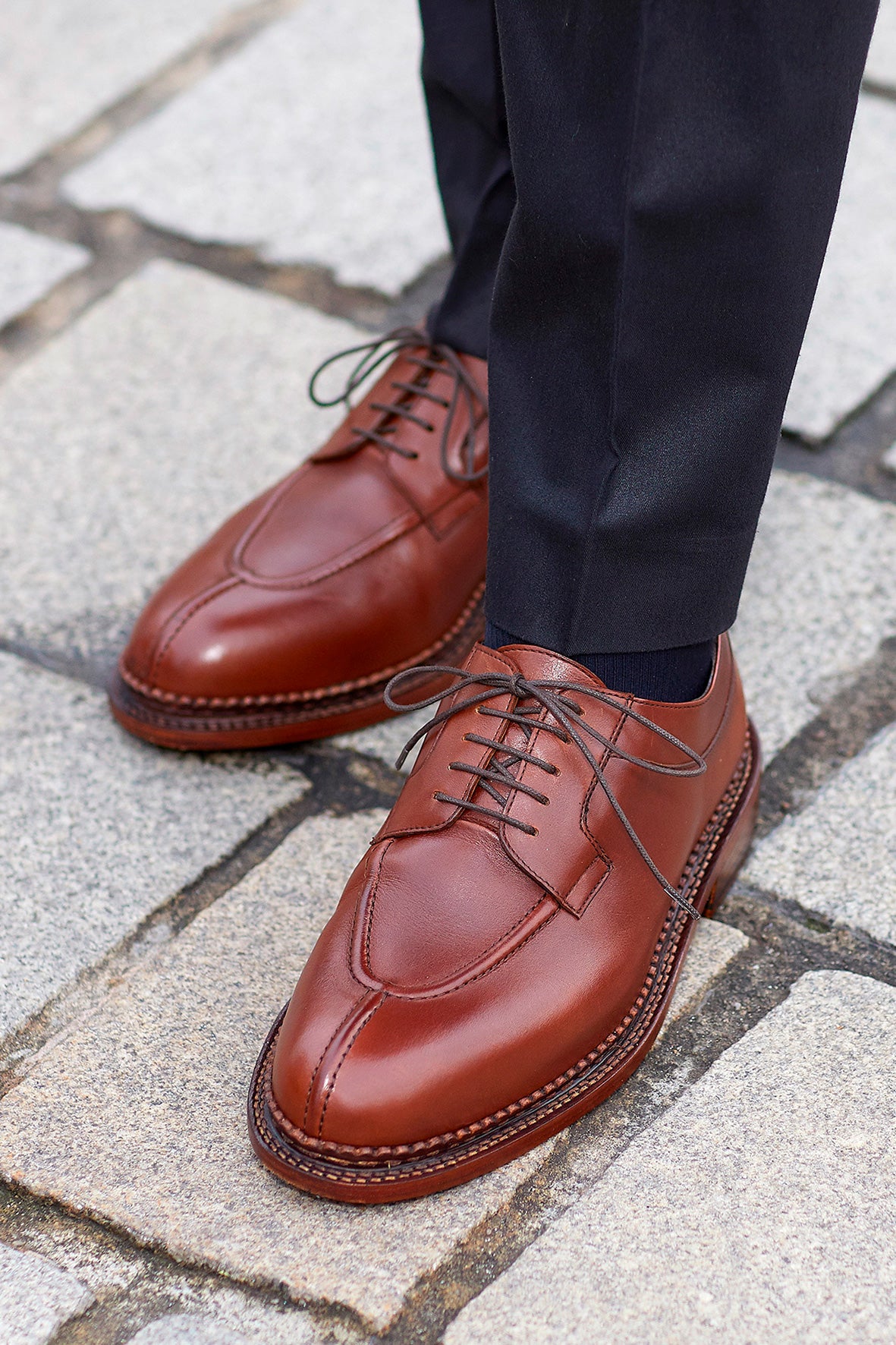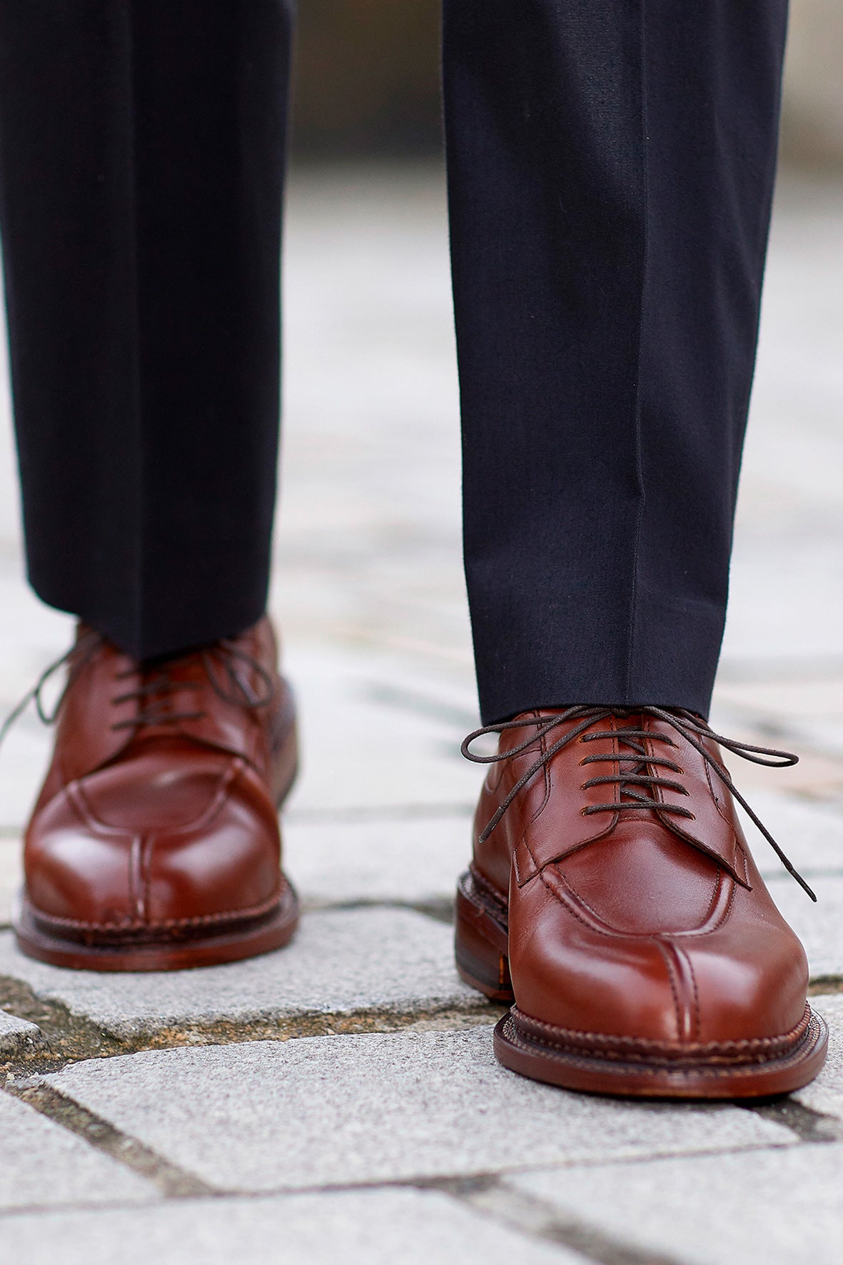 This hunting style derby is a basic that goes well with different clothing styles. It works with a suit as a vintage look. The Chasse M has the particularity of having imposing stitching on the front of the model. They provide structure and bring more character to this derby.