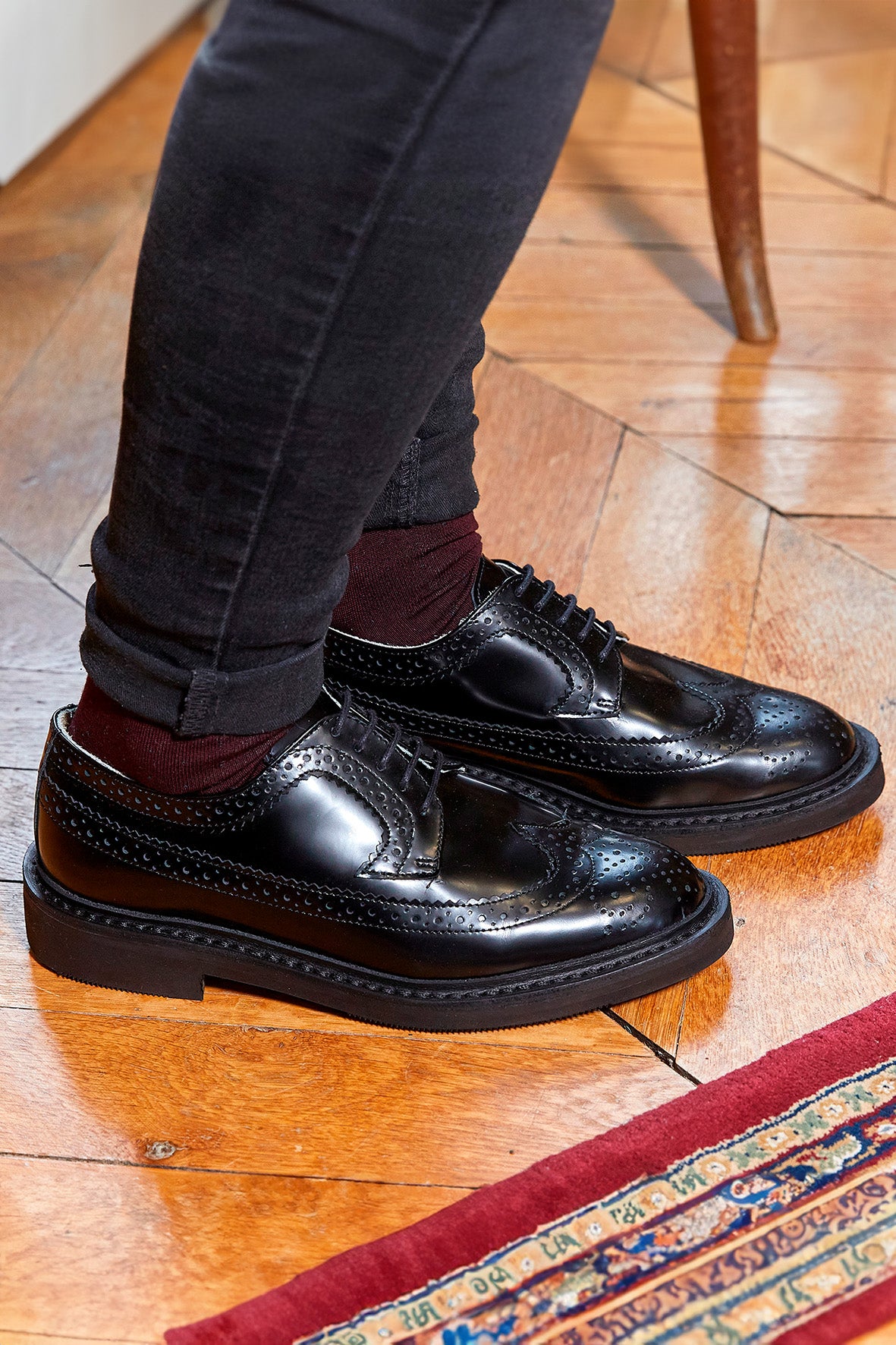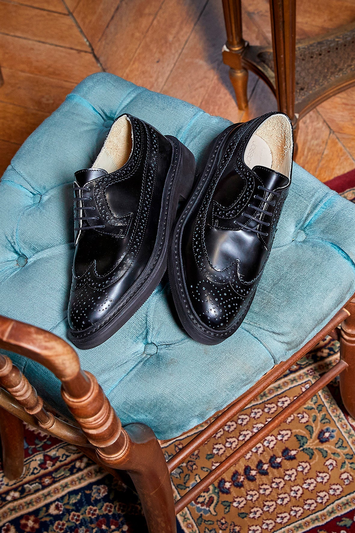Maison Malinge wanted to enrich these Pallas derbies. Perforations, serration and a flowered tip have been added to bring a touch of originality to this great classic.