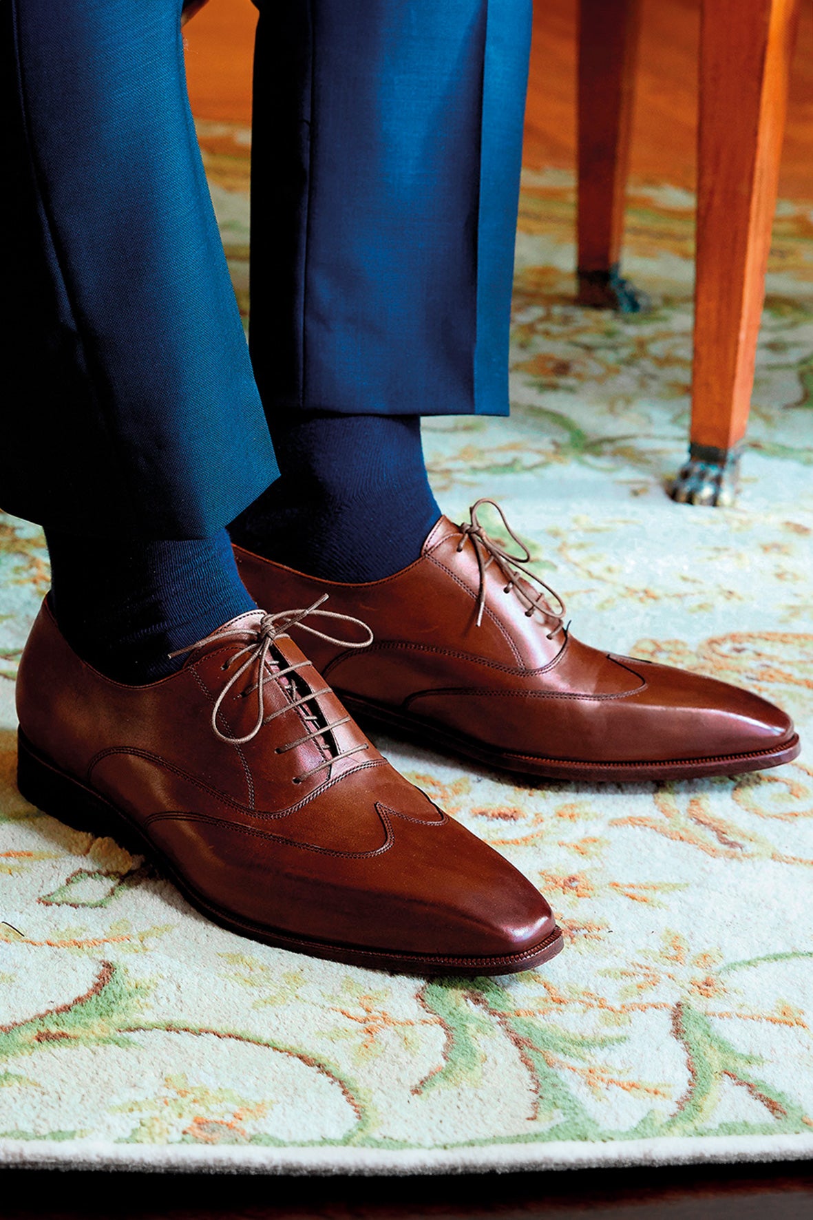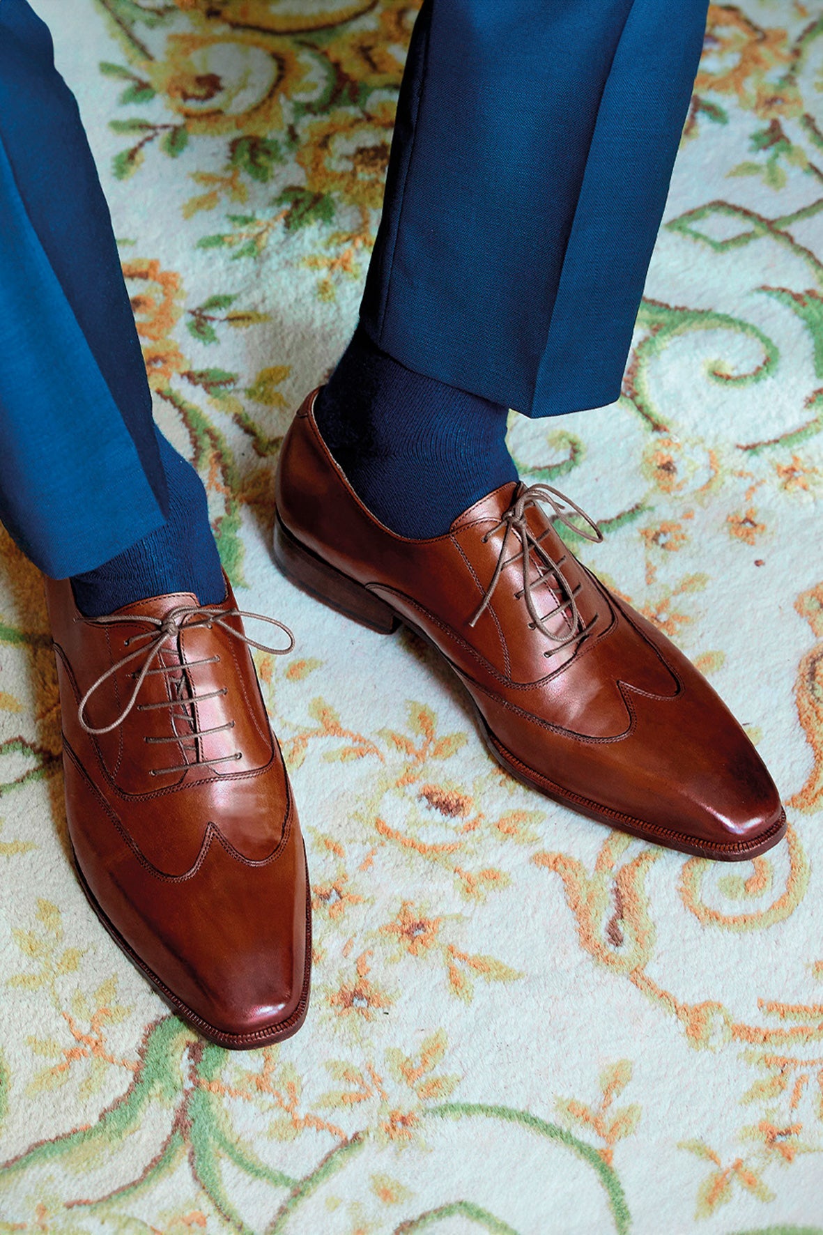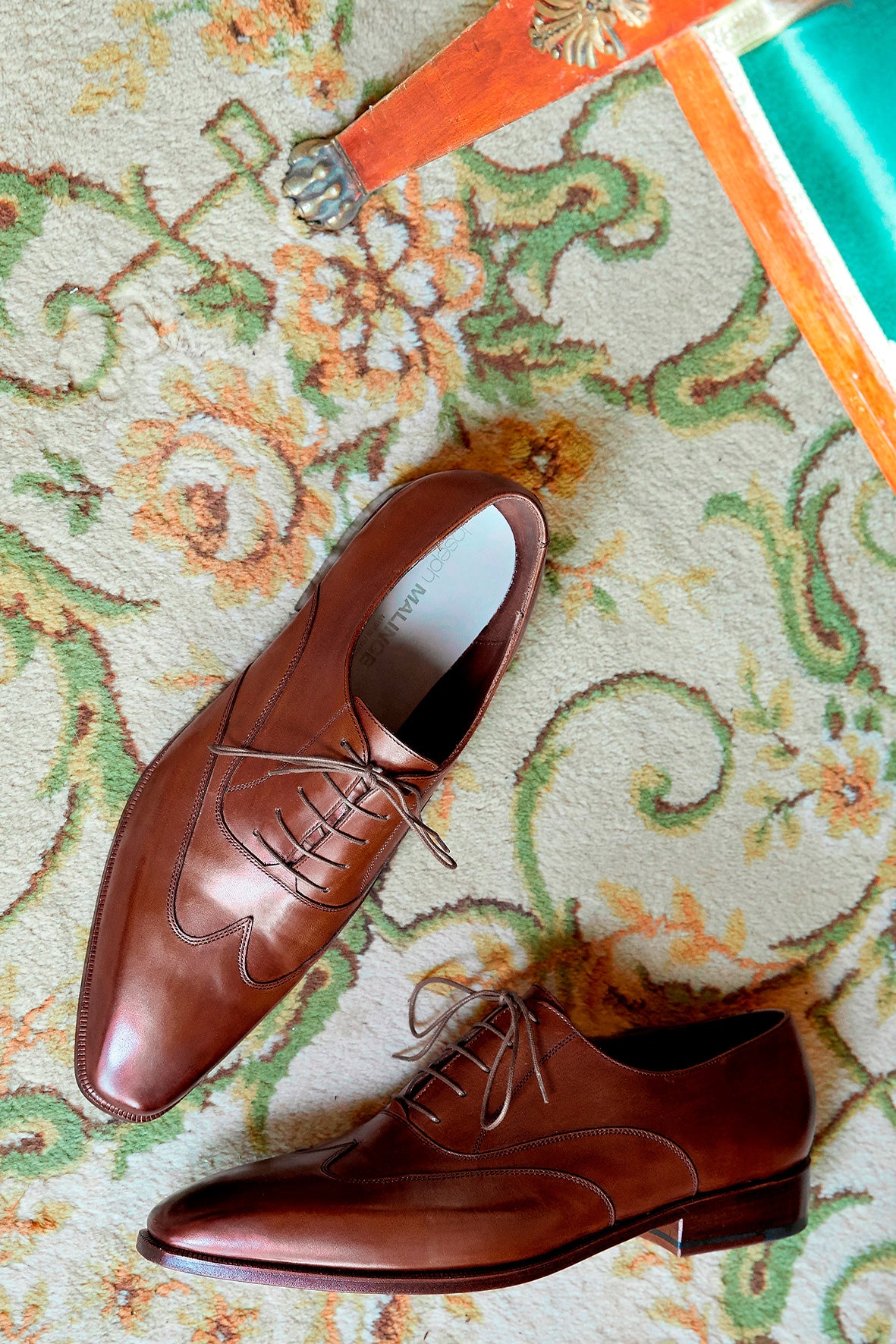 To obtain a distinguished result, our artisans stitched the pieces with two threads in parallel, closely and with very short stitch lengths. The creation of a double curve with a central point at the front of the toe gives more charm to this traditional brogue.