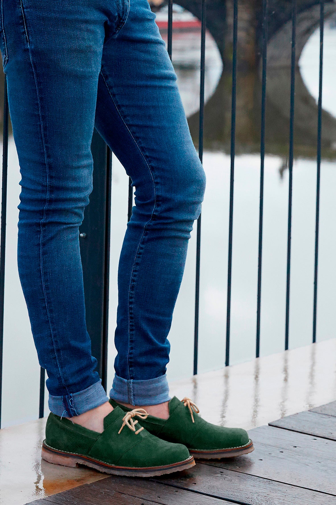 Lactae Hevea ソールとクナイプ ステッチの組み合わせにより、紛れもない柔軟性と快適さを提供します。ヌバックの厚みは、裏地とレザーのトップの間にフォームを入れることで強化されています。このテクニックにより、モデルに丸みのあるデザインと柔らかい着用感が与えられます。