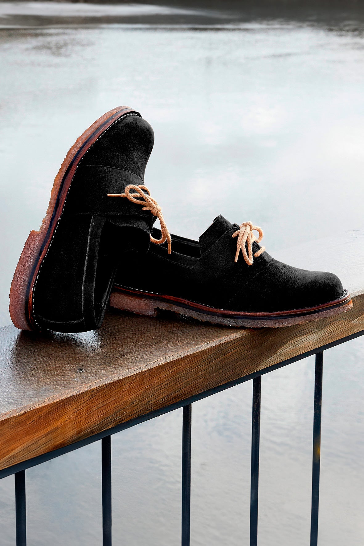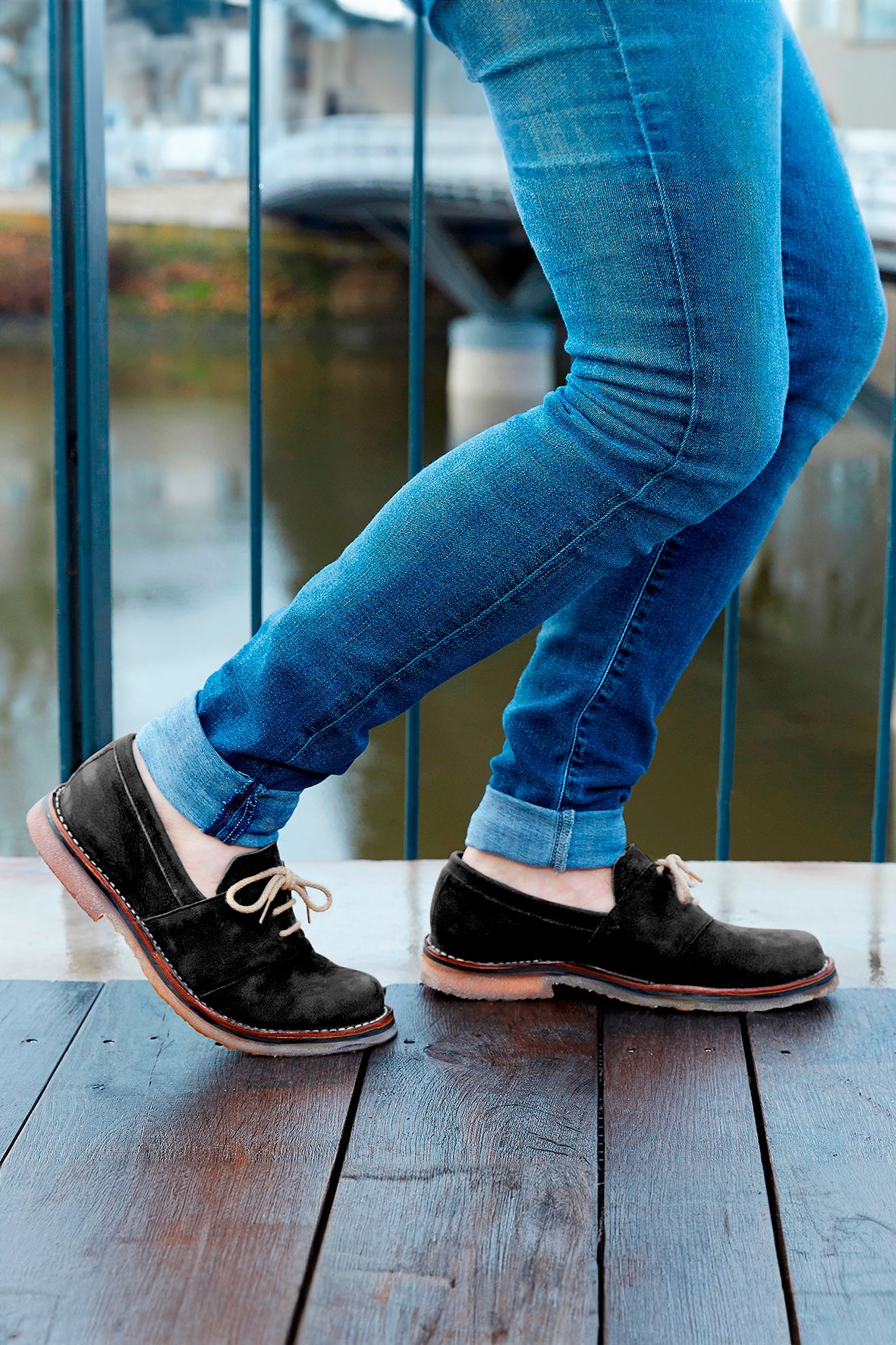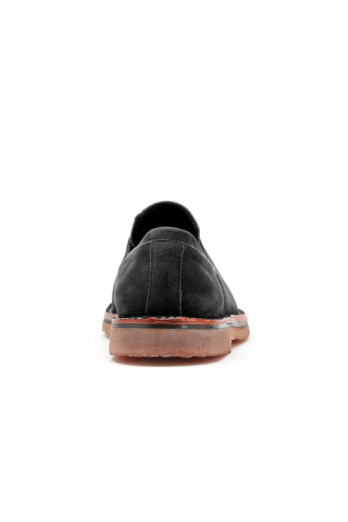 Lactae Hevea ソールとクナイプ ステッチの組み合わせにより、紛れもない柔軟性と快適さを提供します。ヌバックの厚みは、裏地とレザーのトップの間にフォームを入れることで強化されています。このテクニックにより、モデルに丸みのあるデザインと柔らかい着用感が与えられます。