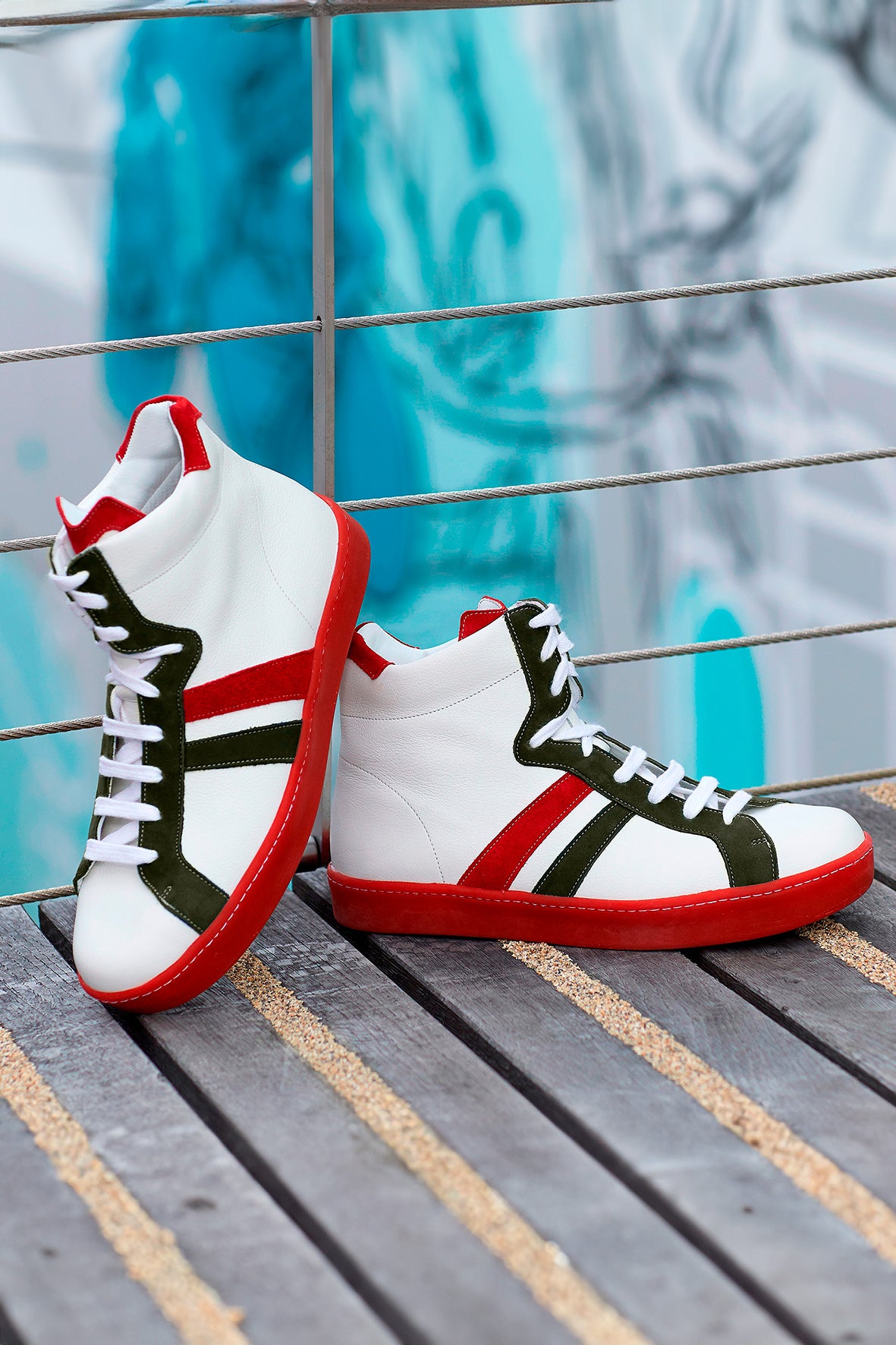 BM フレンチ スニーカー - レッドとカーキ