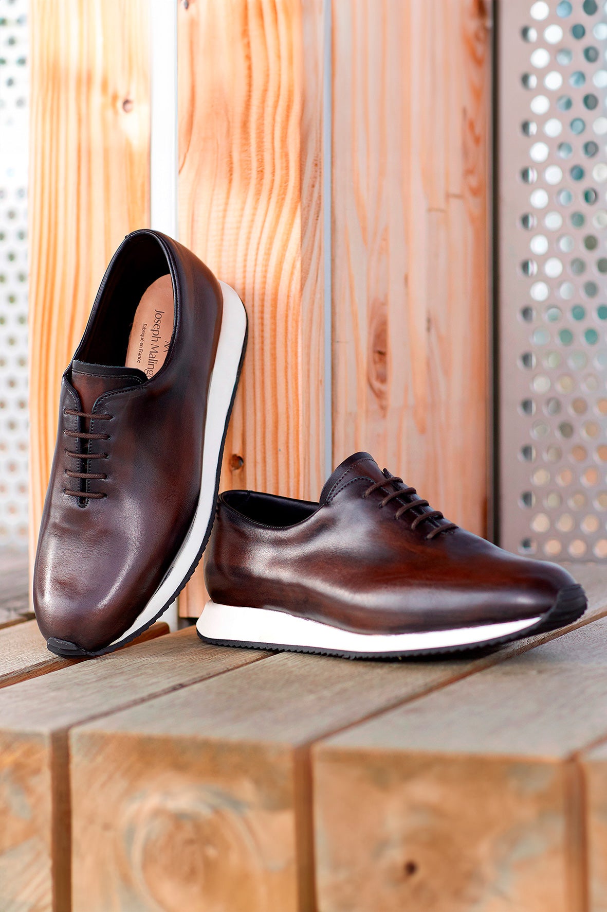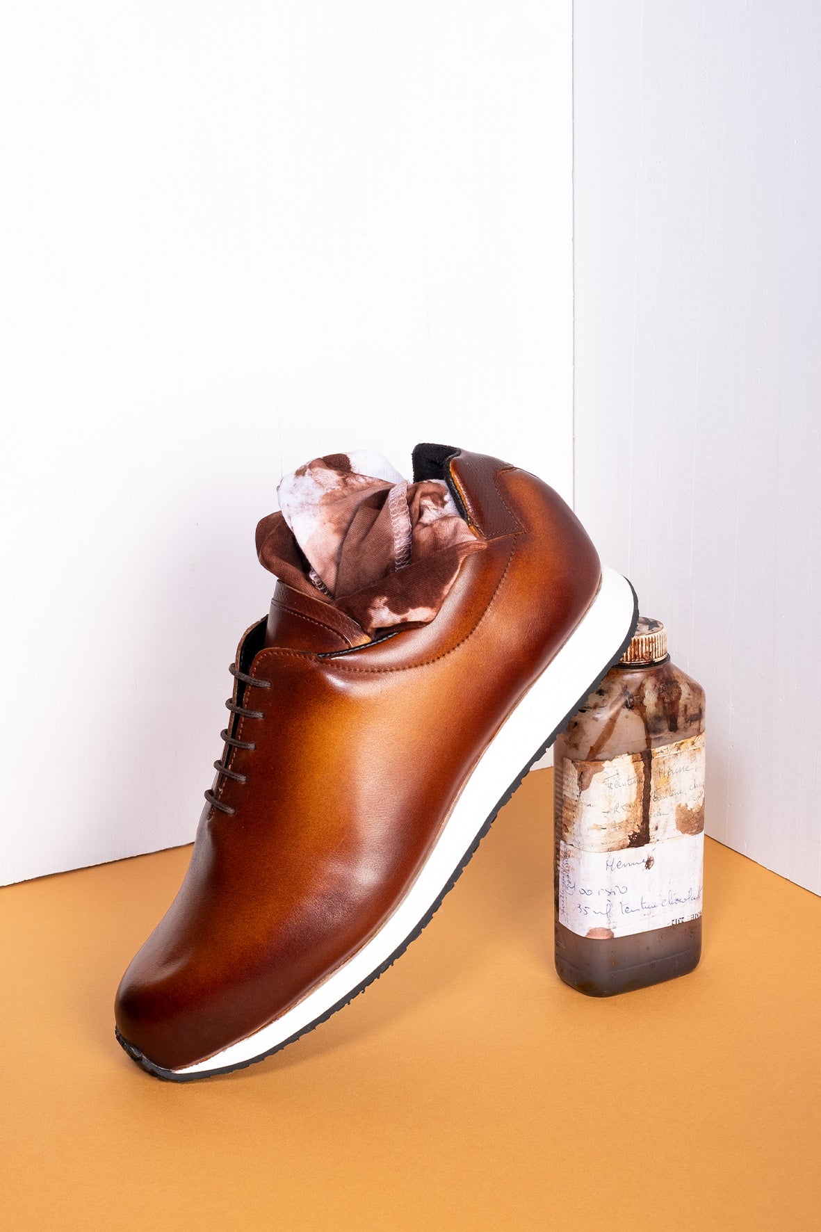 このまばゆいばかりのモデルは、フランスの工房で手作業でパティーヌ加工が施されています。これにより、スニーカーに芸術的な外観が与えられます。あらゆる人の好みに合わせて緑青を調整することが可能です。これら以外の色をご希望の場合は、Maison Malinge まで直接お問い合わせください。こうすることで、ユニークなペアが完成します。