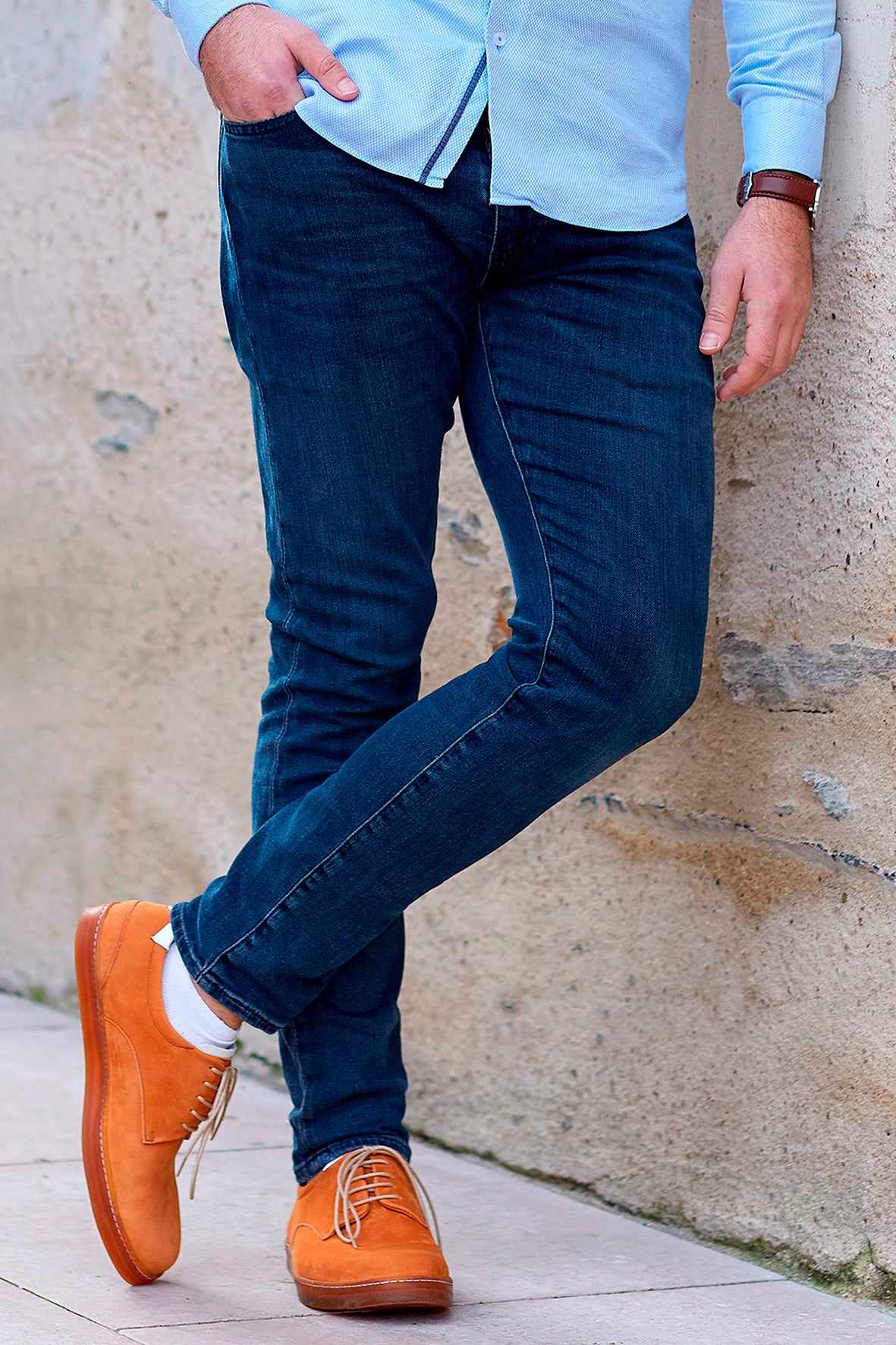 原皮をなめす際に処理を施しているため防水性の高い革を使用しています。このプロセスにより、水は革に浸み込むのではなく、靴の上部を滑り落ちます。表面に残る汚れからも革を守ります。これにより、掃除が簡単になります。さらに、革は非常に細かく研磨されているため、ベルベットよりも柔らかくシルキーです。