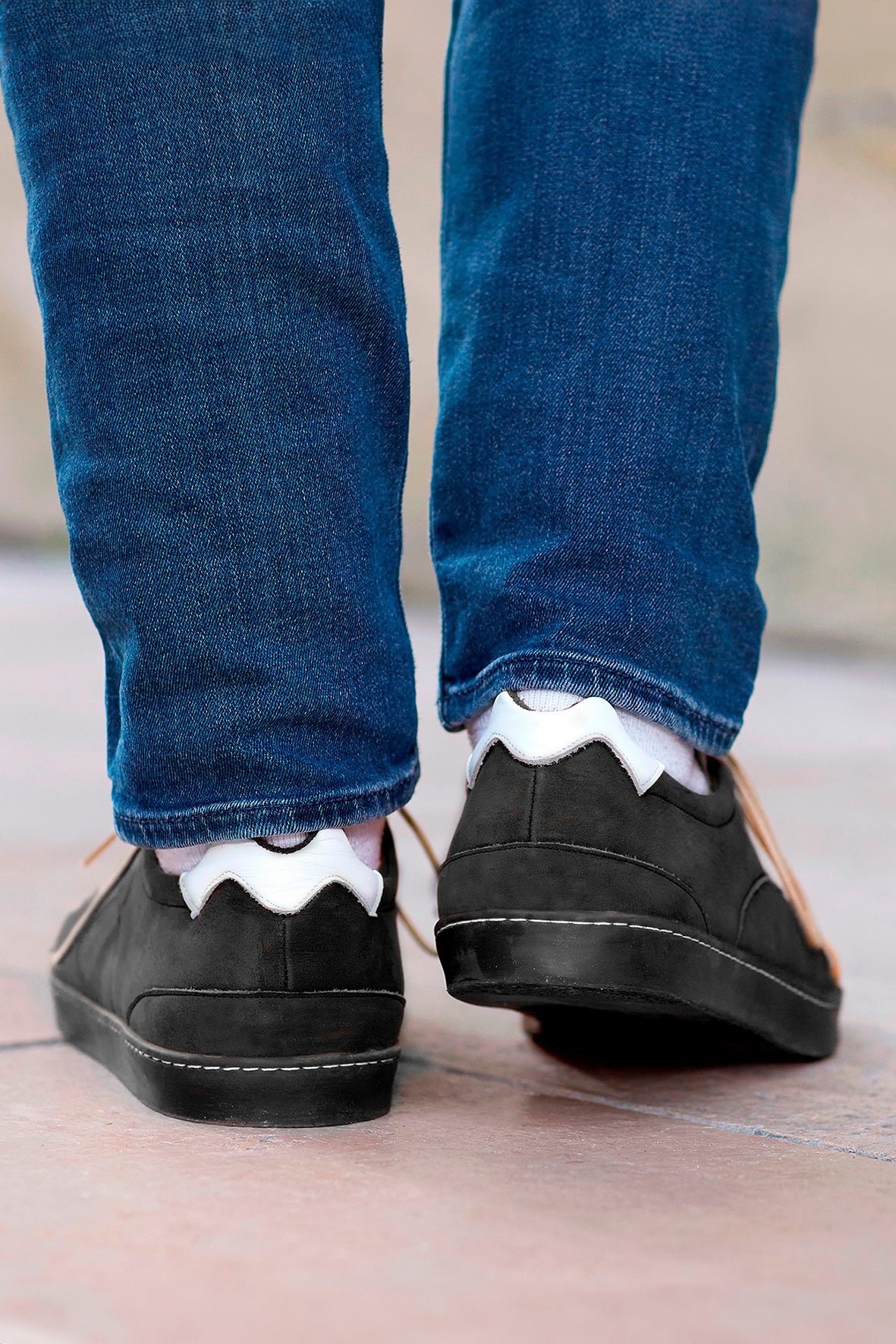 リラックススニーカーは、靴の快適さと持続可能な開発を組み合わせたいという願望を尊重しています。靴が使い古されたら、革はリサイクルできます。靴の内側はレザーソールになります。メゾン マリンジェもパラゴムノキミルクから作られたラバーソールを選びました。これらは完全に天然のもので、牛乳が収穫される木の健康に貢献します。
