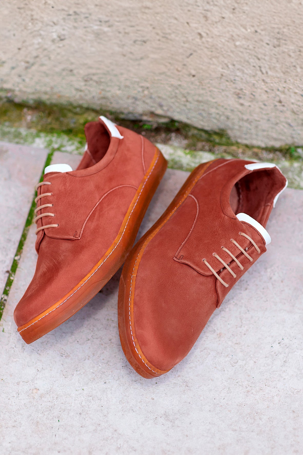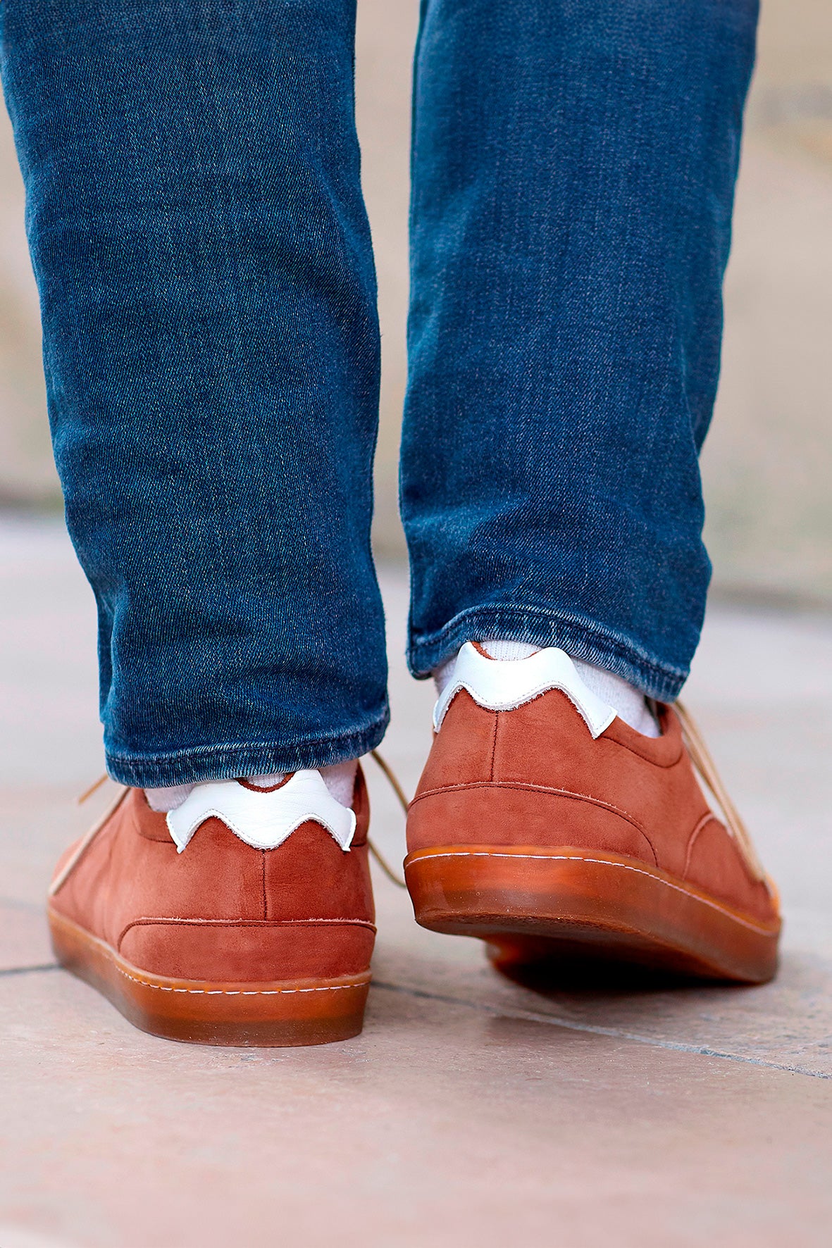 リラックススニーカーは、靴の快適さと持続可能な開発を組み合わせたいという願望を尊重しています。靴が使い古されたら、革はリサイクルできます。靴の内側はレザーソールになります。メゾン マリンジェもパラゴムノキミルクから作られたラバーソールを選びました。これらは完全に天然のもので、牛乳が収穫される木の健康に貢献します。