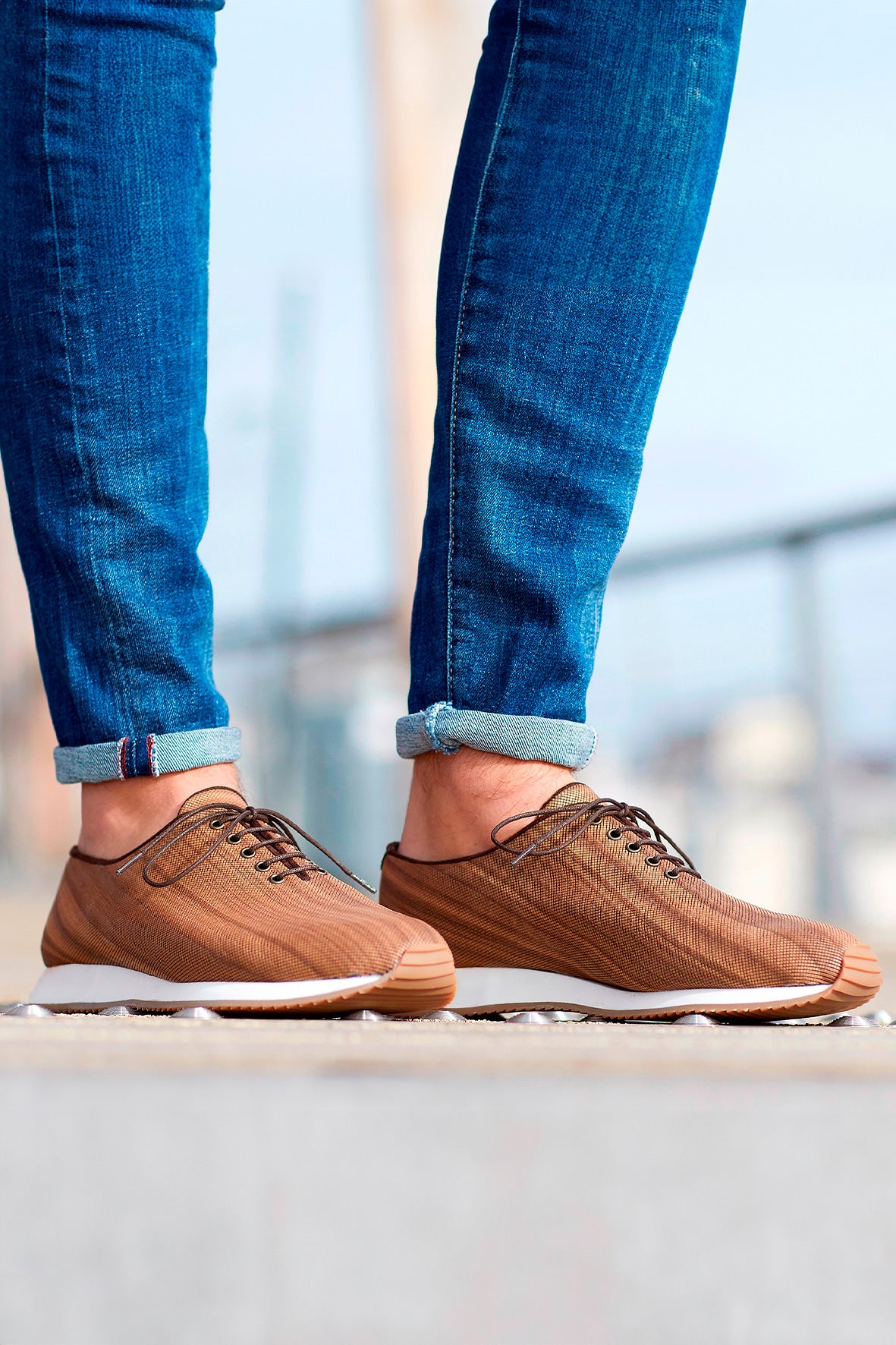 Wood Air スニーカーは、洗練されたフォルムによりエレガントです。靴のフロント部分をレザーで盛り上げることで、スニーカーのデザインに躍動感を与えています。どちらもトレンド感があり、履きやすいです。ジーンズ、T シャツ、スニーカー Wood Air は、誰にでも取り入れられるスタイルです。