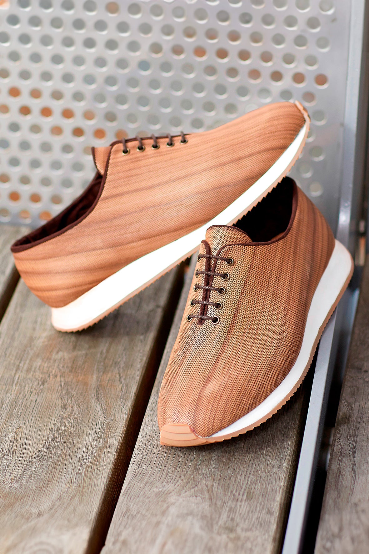 Wood Air はビーガンスニーカーです。外装は通常のレザーからオール天然木のシートに変更。靴の内部にはアルカンターラ繊維が選択されました。 Maison Malinge は持続可能な発展に取り組んでいます。正しい反射神経を身につけるかどうかはあなた次第です。