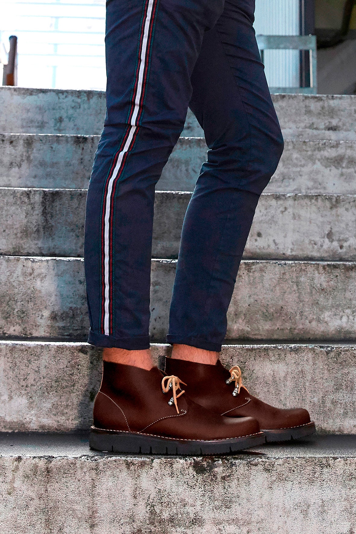 大きな開口部とファスナーにより、素早く簡単に靴ひもを結ぶことができます。肉厚なベジタブルレザーを使用しているのでメンテナンスも簡単です。