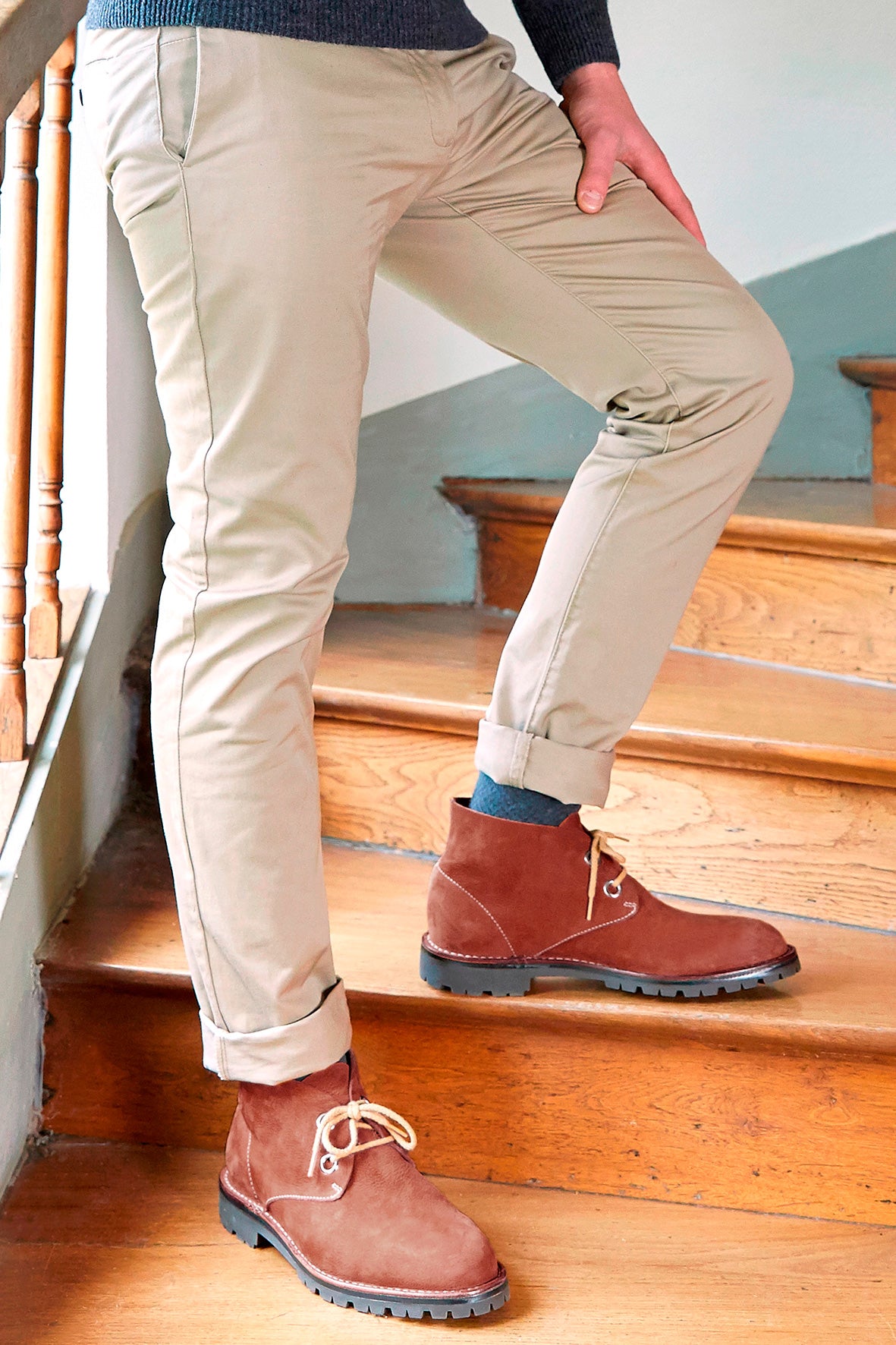 革はしなやかで裏地はありません。これにより、快適で自由に動くことができます。 Tribus ブーツは、天然コルクとレザーのインソールのおかげで日常の衝撃を和らげます。