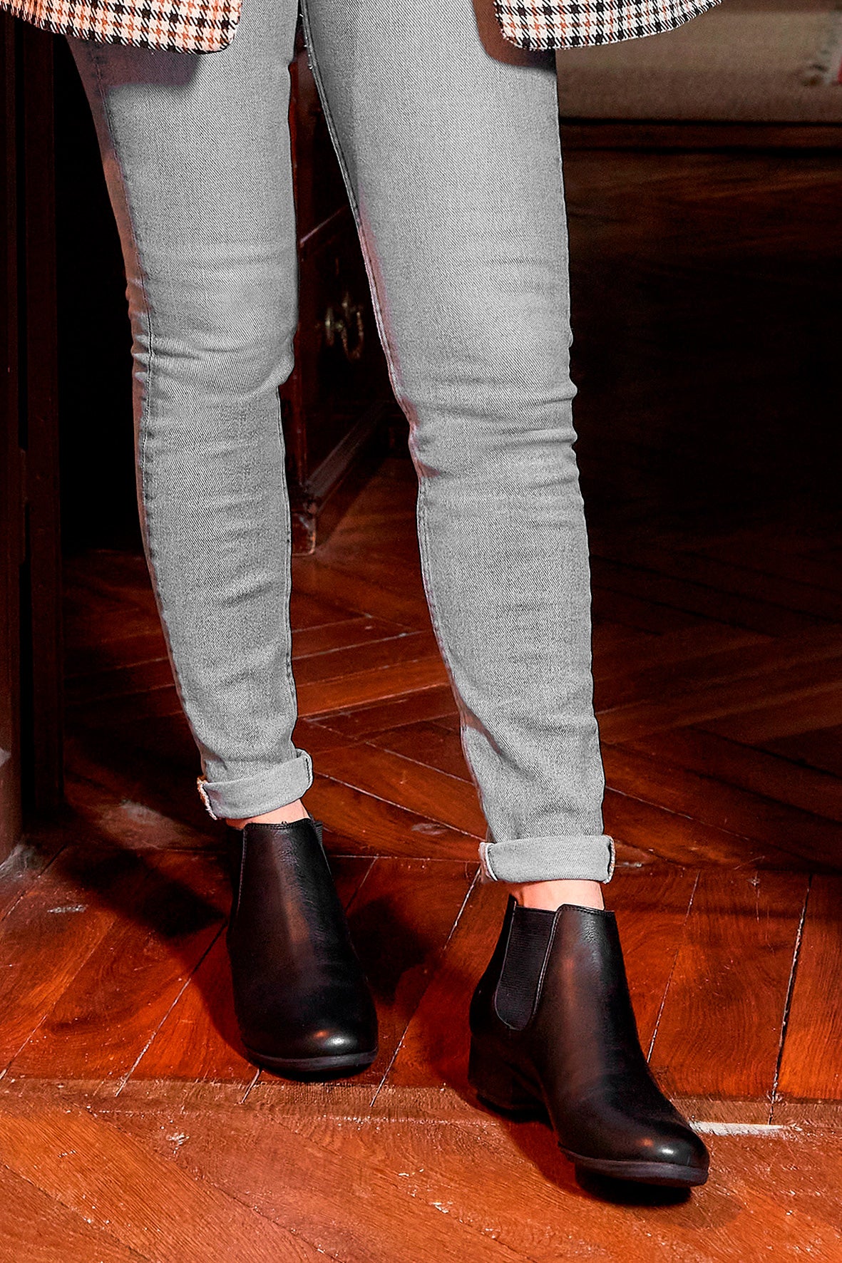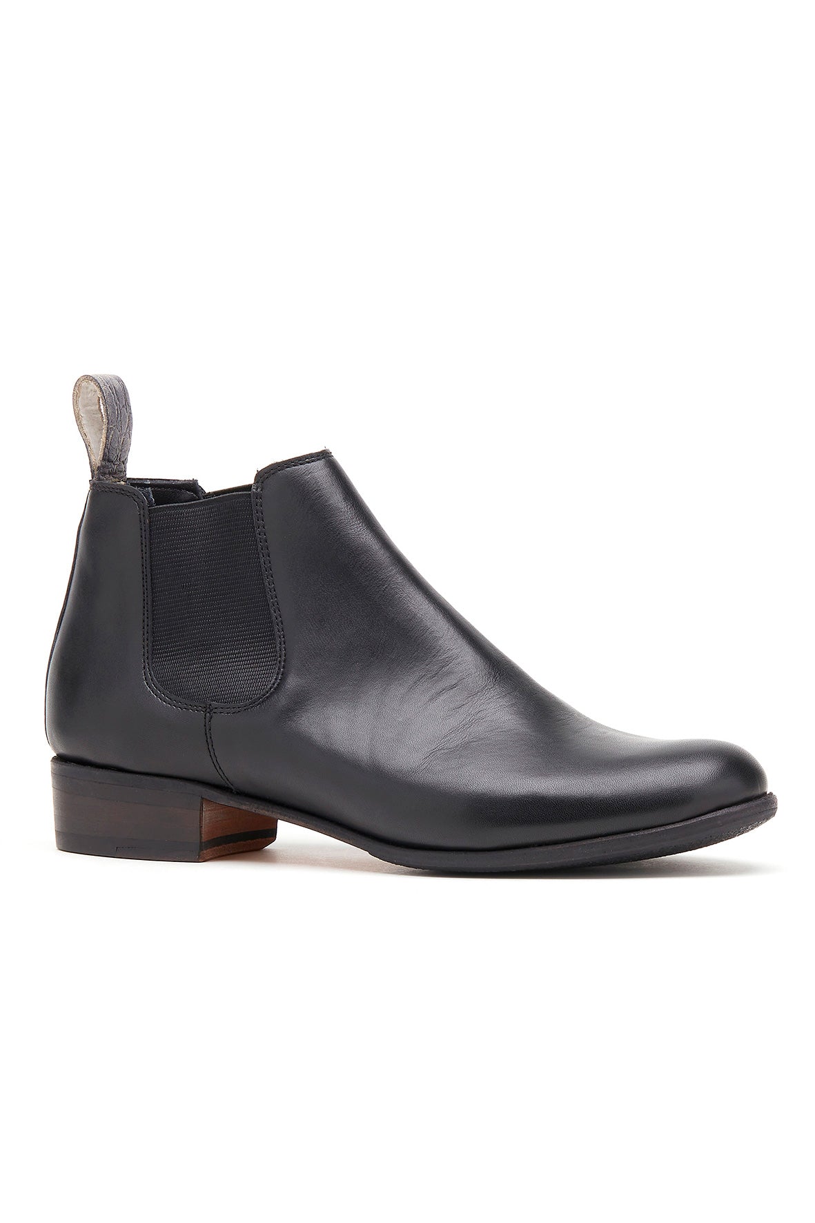 Victoria のフラットな形状により、足がほっそりと見えるアンクル ブーツです。また、レザーソールは薄くてはみ出さないのもこのモデルの魅力です。