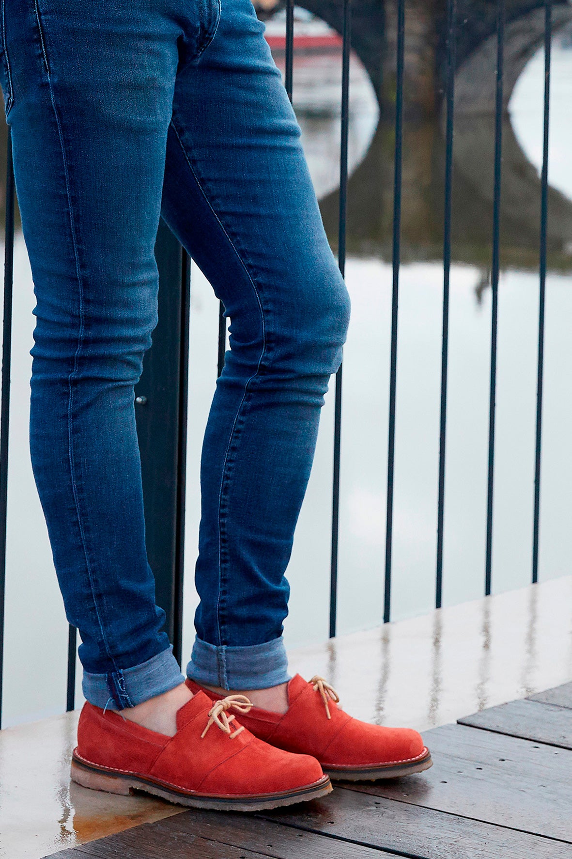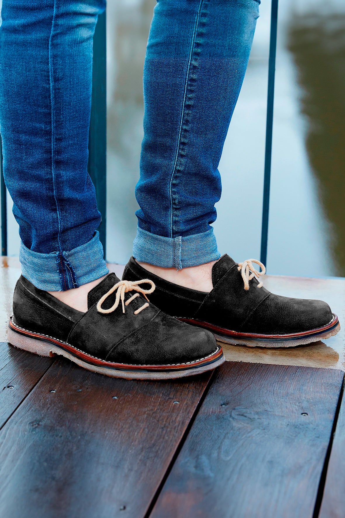 靴のアッパーとレザーソールは工房で手作業でパティーニングされています。同色のシューレースが追加され、すっきりとしたシームレスな仕上がりになっています。