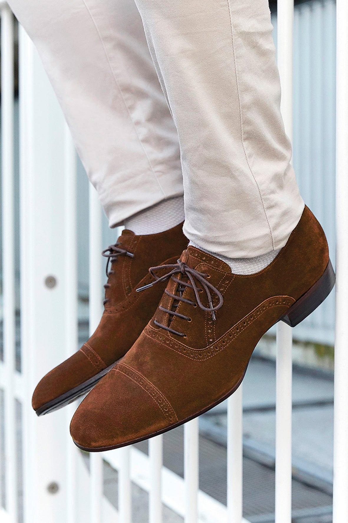 アベニューブローグは夏の必需品です。都会的なスタイルにもドレスアップにも着用できるモデルです。非常に柔らかいレザーソールとスエードレザーの組み合わせにより、一日中軽さを提供します。春や夏の暑さにも対応できます。