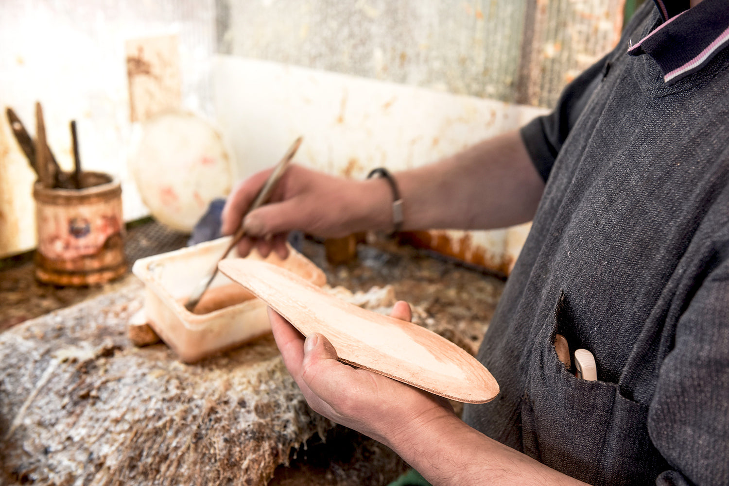 Toutes les techniques ancestrales de fabrication de la chaussure sont réalisées au sein de cet atelier.